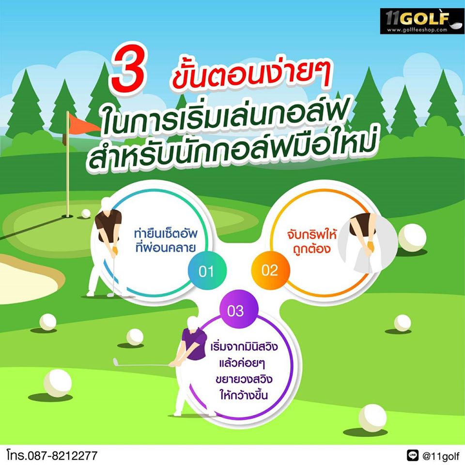 3 ขั้นตอนง่ายๆ ในการเริ่มเล่นกอล์ฟ สำหรับนักกอล์ฟมือใหม่ เรามักเคยได้ยินกันบ่อยๆ ว่ากีฬากอล์ฟ เป็นกีฬาที่ยากที่สุดประเภทหนึ่ง ไม่ว่าจะเป็นผู้ที่เริ่มเล่นใหม่ๆ หรือแม้แต่ นักกีฬากอล์ฟมืออาชีพ ก็ยังต้องมีการฝึกฝน พัฒนา และแก้ไขวงสวิงกันอยู่เรื่อยๆ ทำให้หลายคนที่คิดจะเริ่มเล่นกอล์ฟ ต่างถอดใจไปตามๆ กัน วันนี้เรามีคำแนะนำดีๆ ที่จะช่วยให้การเริ่มเล่นกอล์ฟ ของทุกท่านไม่ยากอย่างที่คิด เพียงแค่ทำตาม คำแนะนำ 3 ข้อนี้เท่านั้น ถ้าเตรียมอุปกรณ์กันพร้อมแล้ว เรามาเริ่มฝึกไปพร้อมๆ กันเลยค่ะ 1.ท่ายืนเซ็ตอัพ ที่ผ...